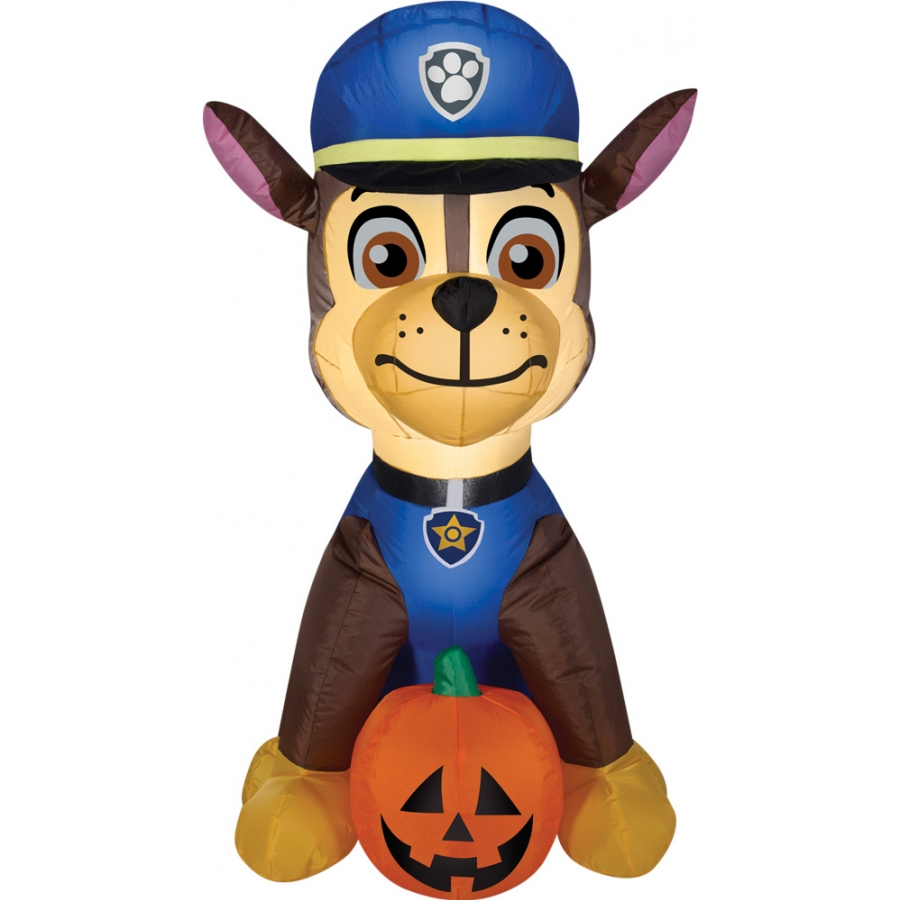 AIRBLOWN PAW PATROL CHASE. Add this 36 in. inflatable to your Halloween yard decor and delight your children! Their favorite character, Chase, from Nickelodeon’s popular show, Paw Patrol, holds a pumpkin to celebrate the season. Airblown gives your decor maximum impact with minimum effort and it comes with everything you need for quick and easy set-up. You just stake it down and plug it in. Lights up with clear LED lights Self-inflates in seconds Deflates for easy storage Made of Fabric,80%; Electronics,10%; Plastic,10%. Measures approximately 36 inches tall,20 inches wide, and 30 inches deep. airblown-paw patrol chase w/pumpkin-sm-nick
