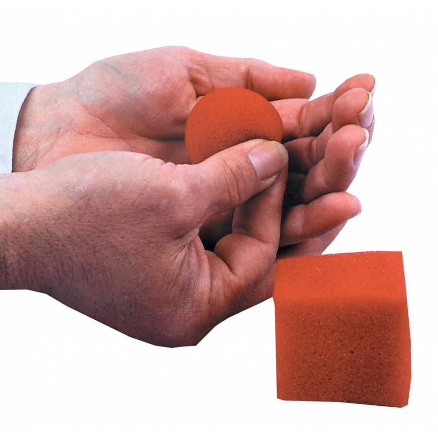 BALL SQUARE MYSTERY. Simply by placing a sponge ball into your hand it changes to a square sponge.