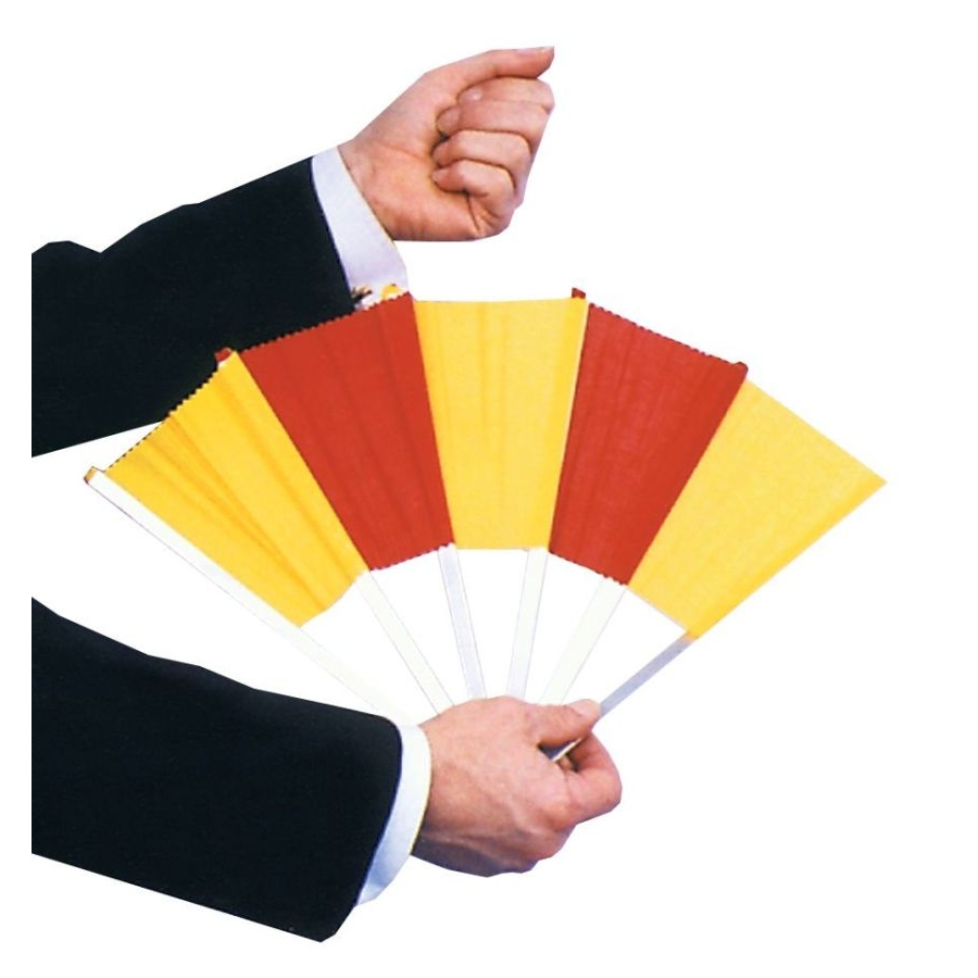 BREAKAWAY FAN. Magician opens a colorful fan, and asks a spectator to help by holding it. Much to their surprise, it falls apart!
