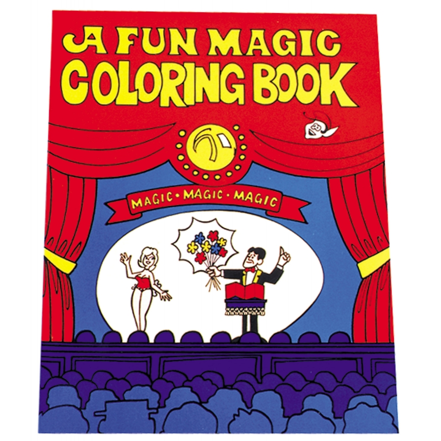 COLORING BOOK FUN MAGIC. Magician thumbs through his coloring book, showing all pages blank, waves his hands and all pages have a line drawing, Does it again, now all pages are colored. It’s real magic.