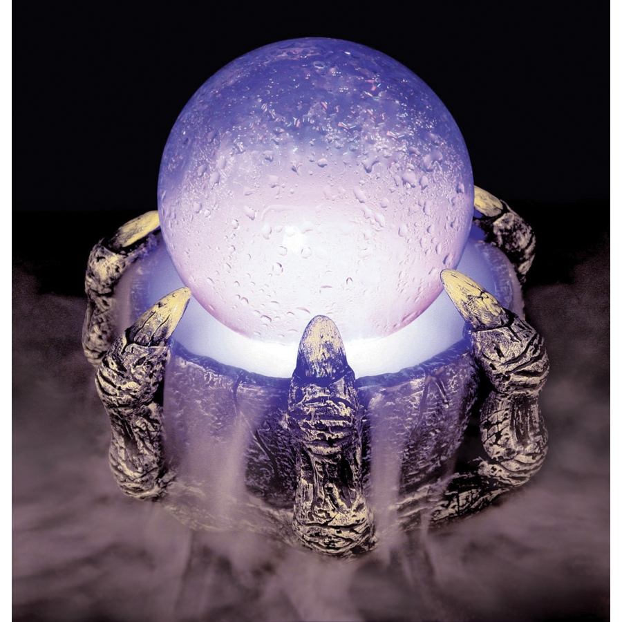 CRYSTAL BALL MISTER. This ABS Crystal Ball comes with a mister unit and adaptor. Item is approximately 8.5″ tall. Mister runs on regular tap water and makes a great decoration for any haunt or Halloween display.