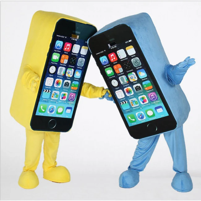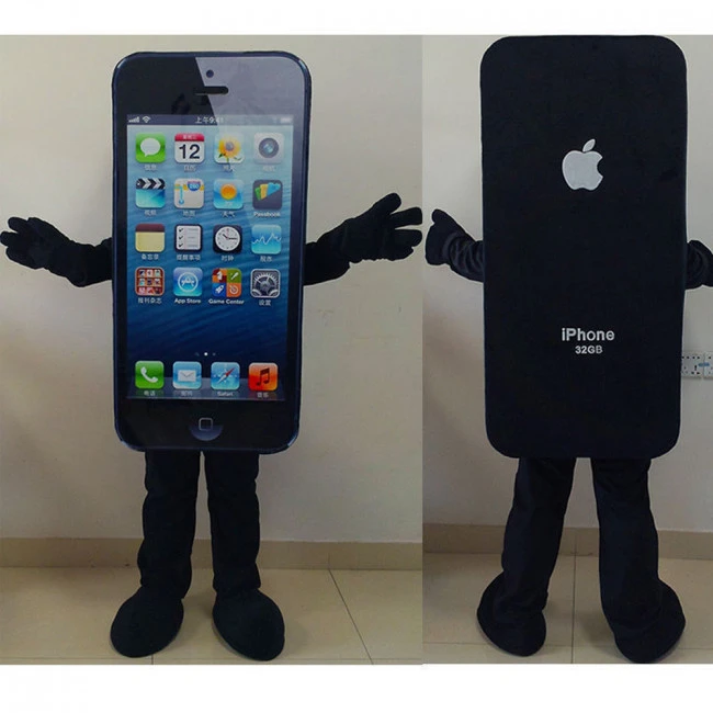 Giant iPhone Mascot Costume. Hear Ye! Hear Ye! Meet the phone that truly changed the world and that is the iPhone. The iPhone is a smartphone that is made by the company called Apple that combines a computer, iPod, camera and phone all into one with a touchscreen interface. The iPhone became a dominant economic force as it progressed. Here we have the iconic iPhone as a Giant Costume, with a screen that is soft to the touch. Have fun being the talk of the town and stand out with this adorable character.